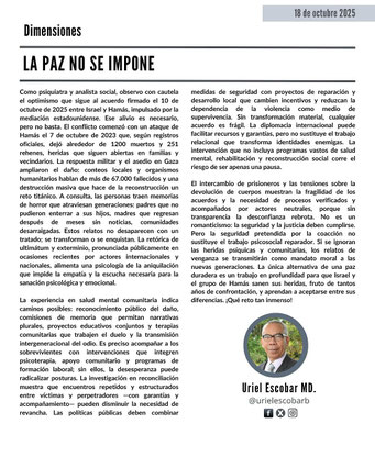 El hambre genera inestabilidad social a todos los niveles; no se puede pensar ni remotamente en alcanzar la paz, ni vivir en convivencia y armonía, si existen esas brechas ominosas entre los colombianos. No es posible pedirles a las personas que no ejerzan su derecho inalienable a la protesta, si no se hace un trabajo concertado con todos los sectores de la sociedad para mejorar las condiciones de vida de tantos millones de hermanos.